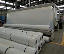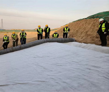 膨潤土防水毯又叫膨潤土墊每平方克重在3000克--6000克之間,屬于重貨因此在鋪設時現場人員在10人左右,材料鋪設后所有人員負責調整相鄰兩卷防水毯搭接30cm-50cm,調整完成后安排一人在搭接重合面撒搭接粉,相鄰兩卷完成后在進行下一卷的鋪設,該兩卷完成后如需回填在鋪設第三卷過程中前面兩卷就可以回填了,形成流水線作業模…